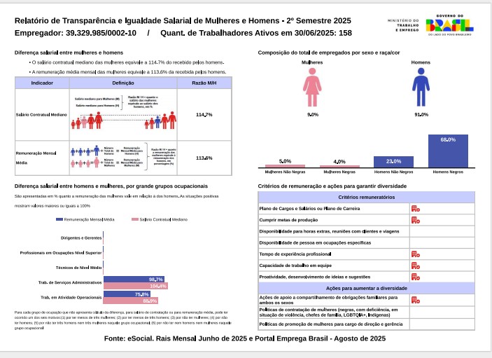 Sobre a Lei – Em 3 de julho de 2023, foi sancionada a Lei nº 14.611, que aborda a igualdade salarial e de critérios remuneratórios entre homens e mulheres no ambiente de trabalho, modificando o artigo 461 da Consolidação das Leis do Trabalho (CLT). Empresas com mais de 100 empregados devem adotar medidas para garantir essa igualdade, incluindo transparência salarial, fiscalização contra discriminação, canais de denúncia, programas de diversidade e inclusão, e apoio à capacitação de mulheres. A lei é uma iniciativa do Ministério do Trabalho e Emprego e do Ministério das Mulheres. Para mais informações, consulte a Instrução Normativa do MTE Nº 6, de 17 de setembro de 2024 – DOU – Imprensa Nacional.